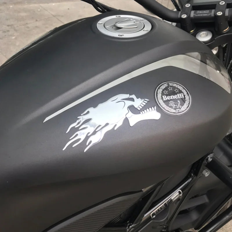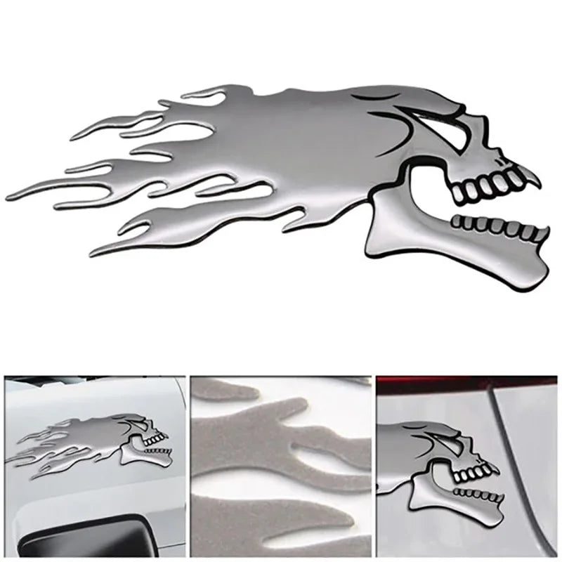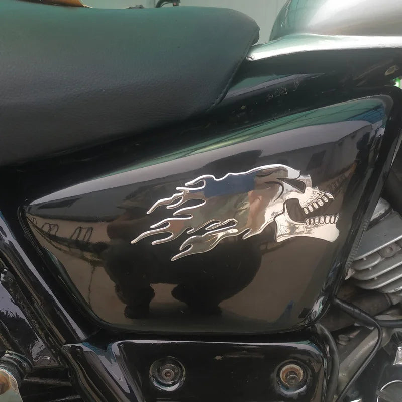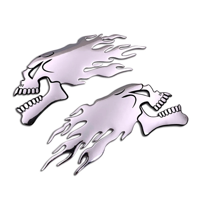- Design: Chrome Plating:Chrome plating gives the skull head stickers a sleek, reflective finish that adds a touch of luxury to your ride.