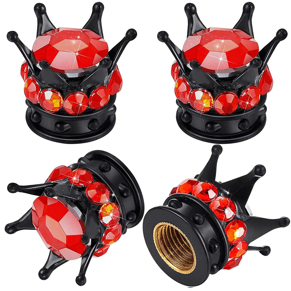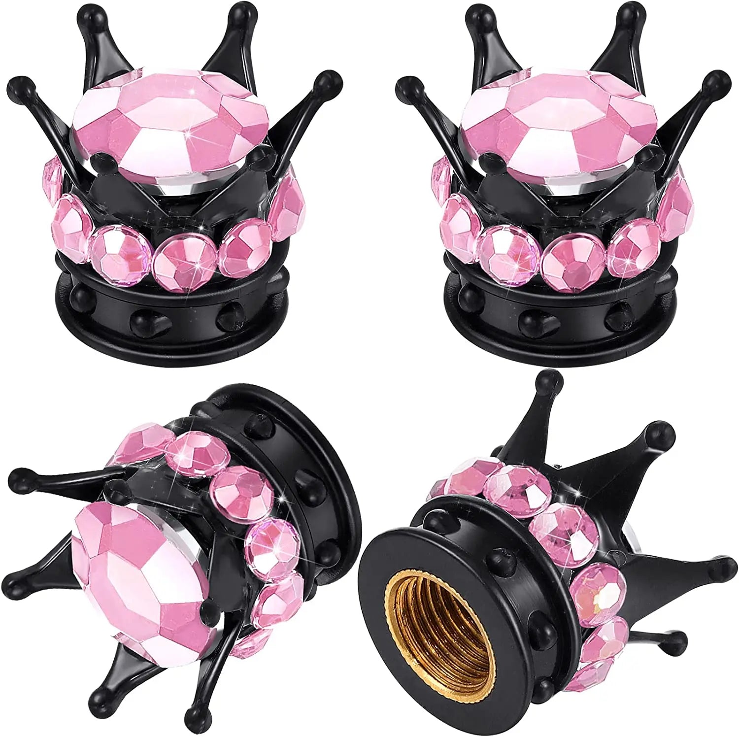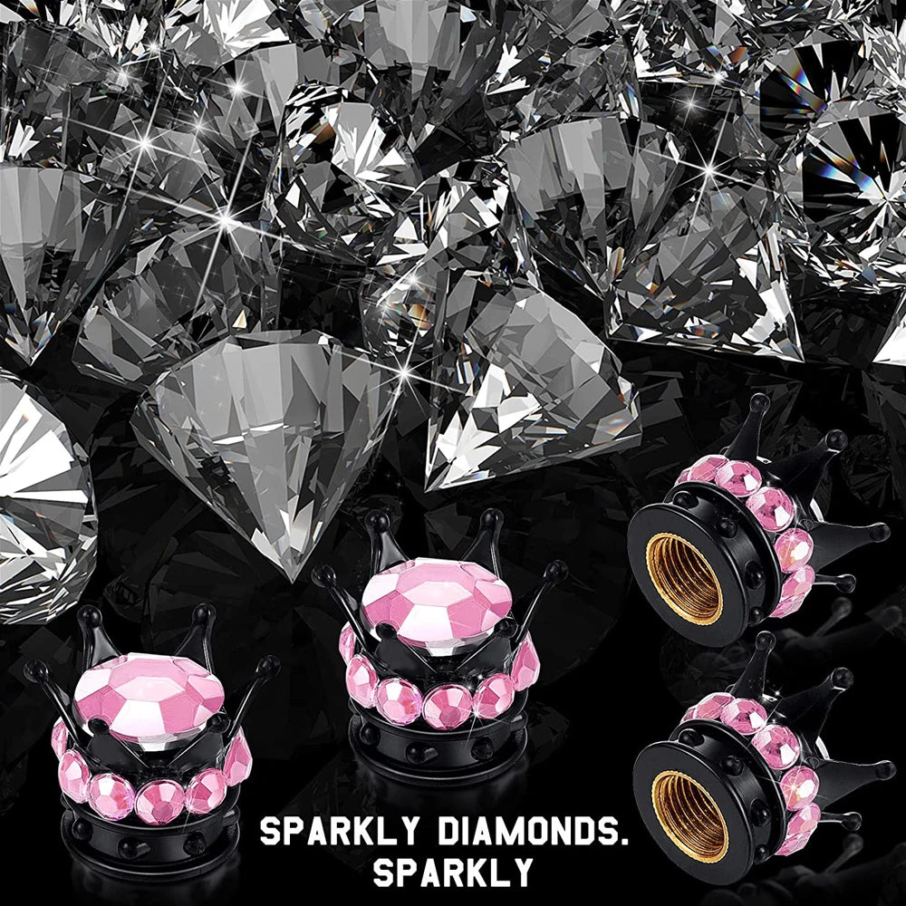 4Pcs/Set Bling Bling Rhinestones Valve Stem Caps, Chrome Crown Tire Valve Stem Caps for Car Auto Bike and Motorcycle