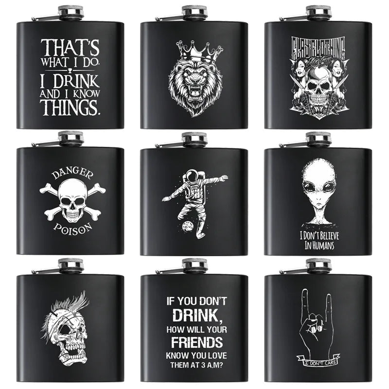 6oz Stainless Steel Outdoor Hip Flask Pocket Laser Print Hip Flask Portable Wine Whiskey Jug Bottle