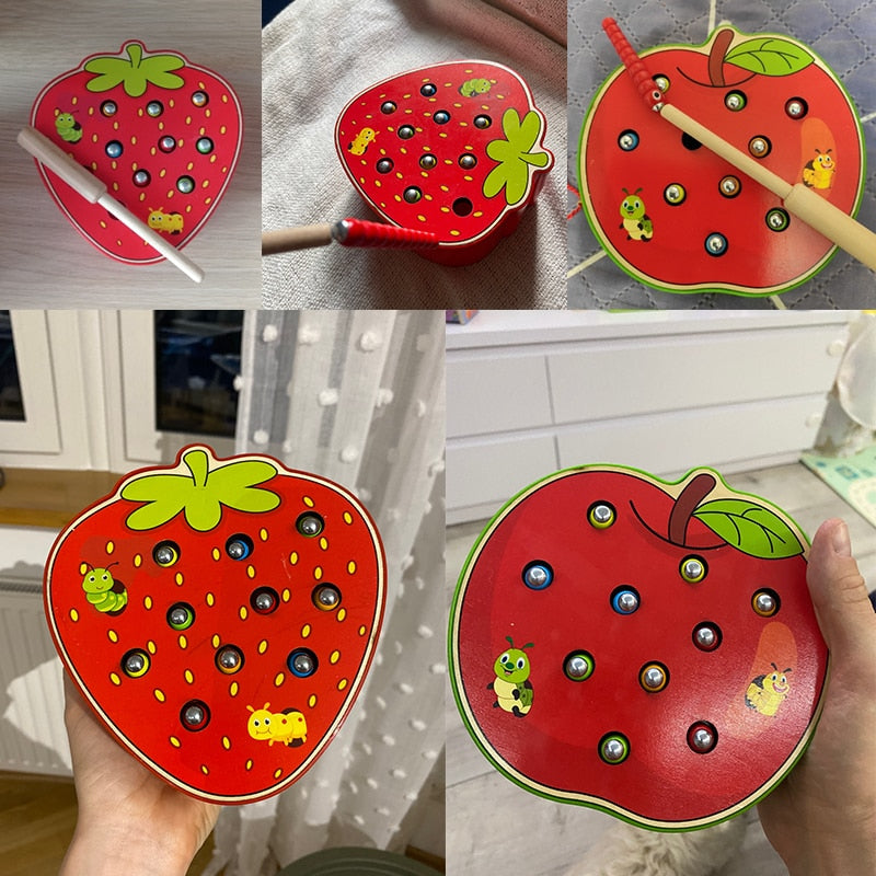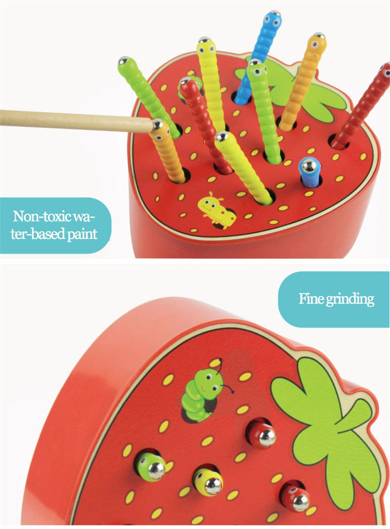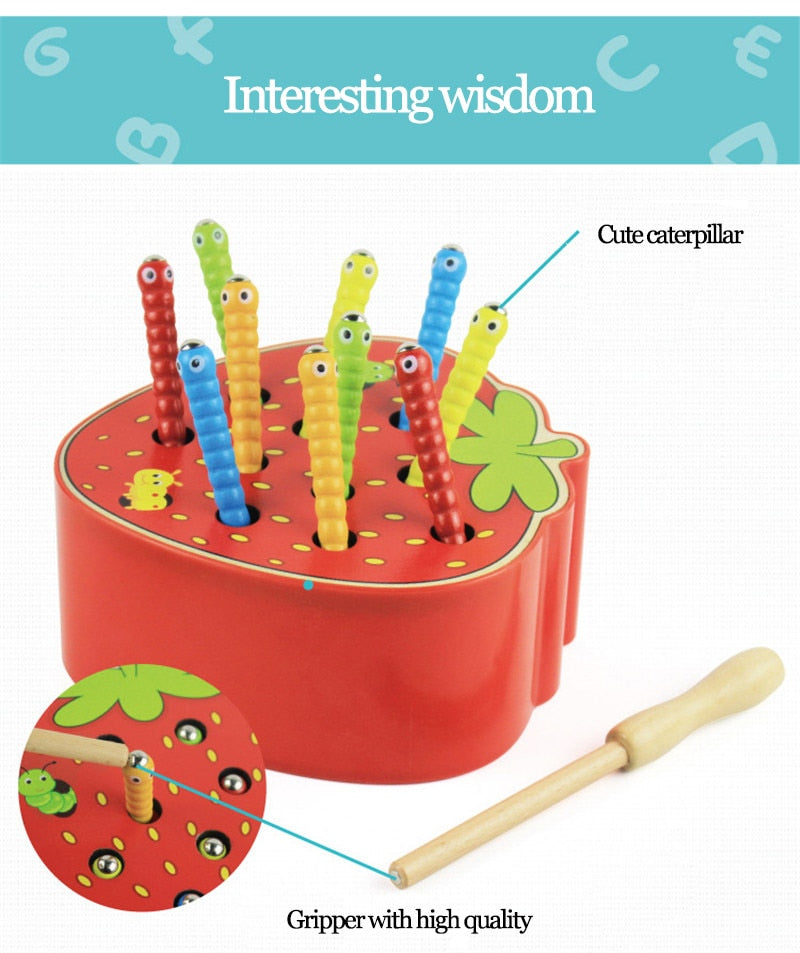 Baby Toys Wooden 3D Puzzle Early Childhood Educational Toys Montessori Magnetic Catch Worm Game Color Cognitive
