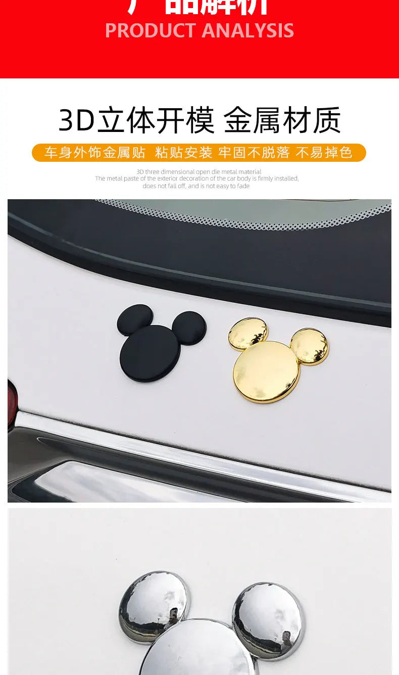 Ear metal car personality car stickers 3D stereo creative car logo Mickey Minnie decorative stickers MINI Golf various models