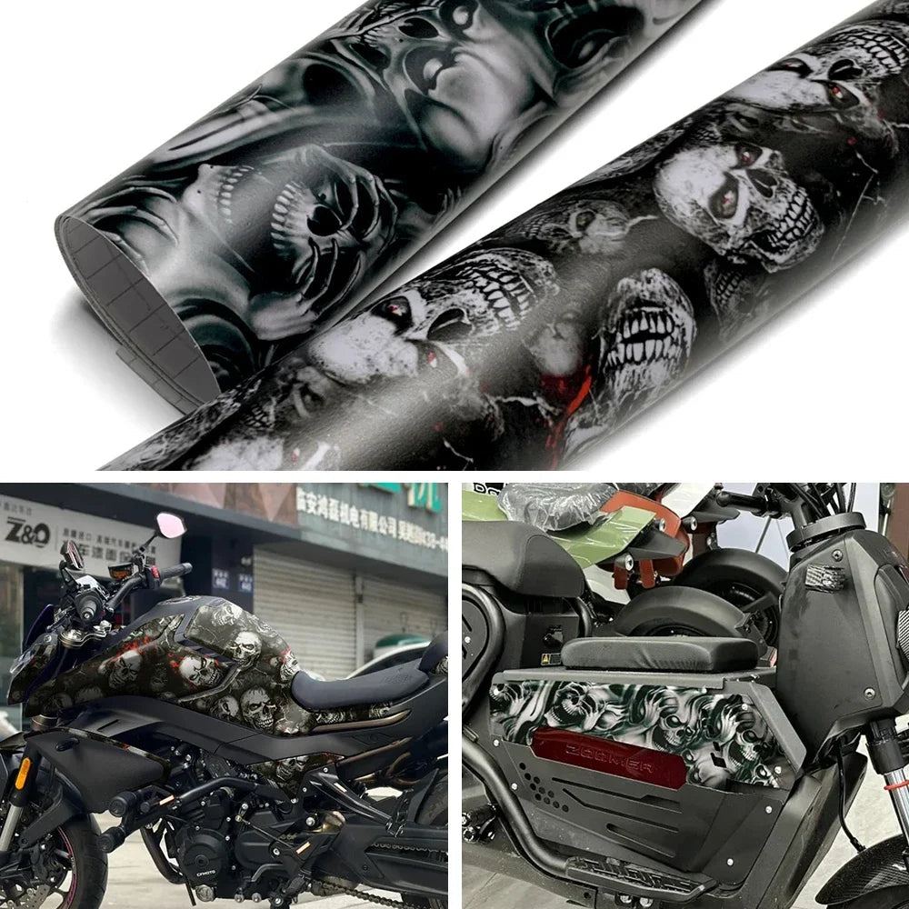 Car Stickers Wrap Vinyl Skull Cartoon Printed Auto Body Film Self-Adhesive Camo Modification Film for Motorcycle Car Accessories