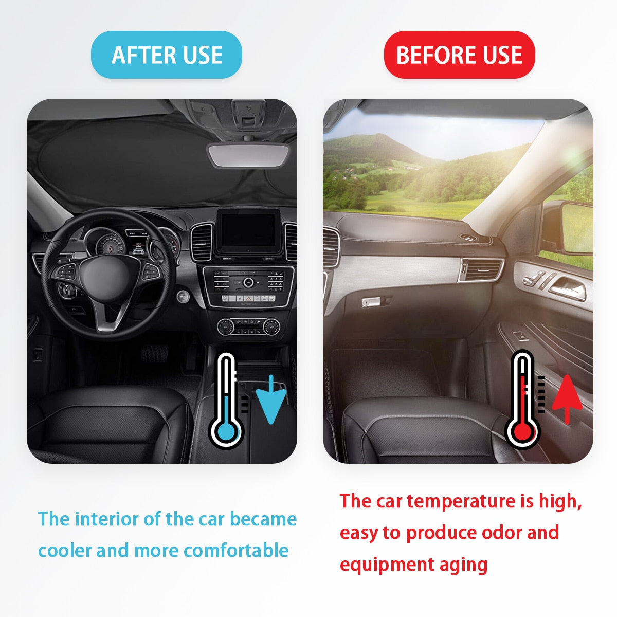 4. Car sunshade is a great help to protect things in the car, when opened up it covers the whole windshield and makes a cool environment in hot summer. Ideally for front and rear car windshield window. Twisted to fold into smaller size for storage.