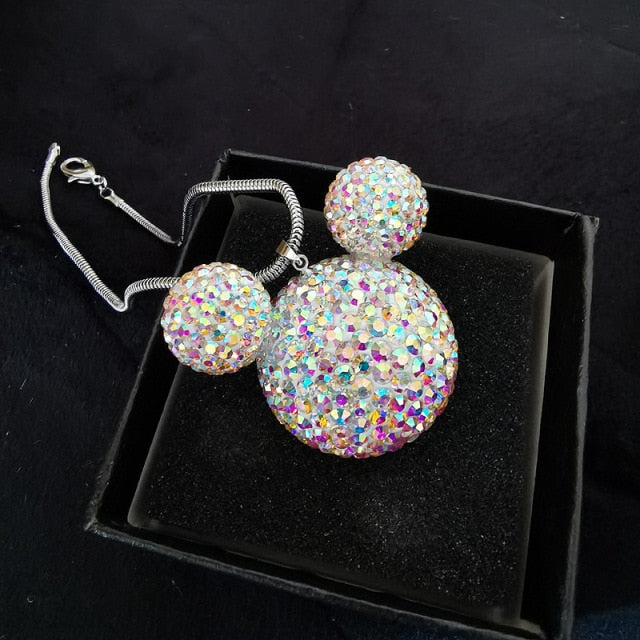 Crystal Ball Car Pendant Cute Cartoon Mickey Bling Car Mirror Hanging Accessories Car Interior Decoration