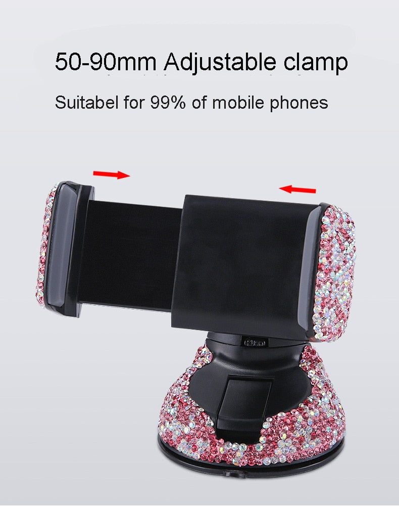 Crystal Rhinestones 360 Degree Car Phone Holder for Car Dashboard Auto Windows and Air Vent