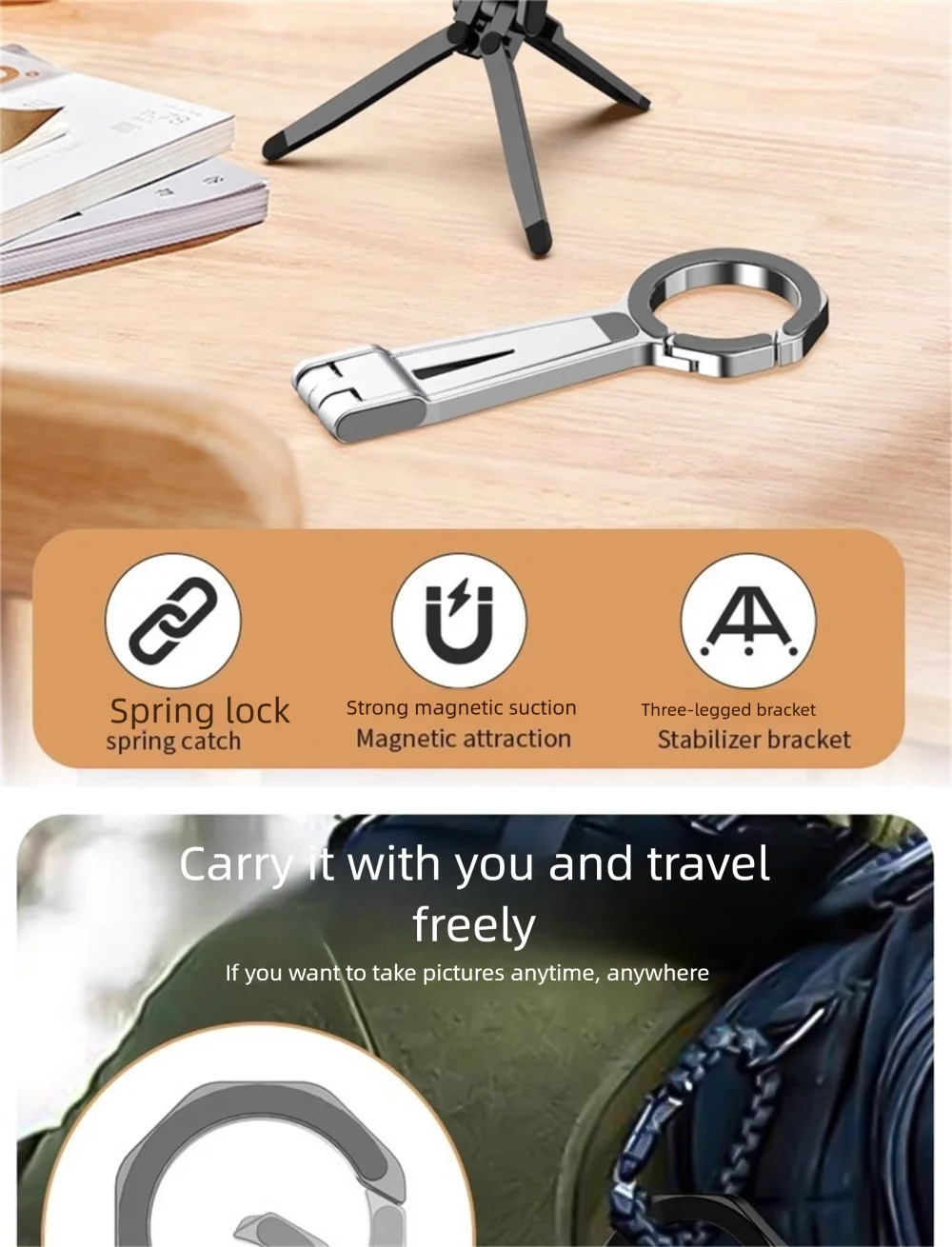 Magnetic ring alloy mobile phone holder Supports Tablet/phones Tripod Stand Portable Foldable Bracket Pocket Cell Phone Stand Non-slip