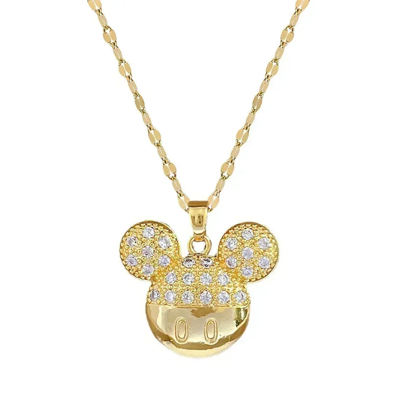 Mickey Minnie Mouse Studded with Zircon Necklace for Women Girl Stainless Steel Chain Sweet Gift for Friends Kids