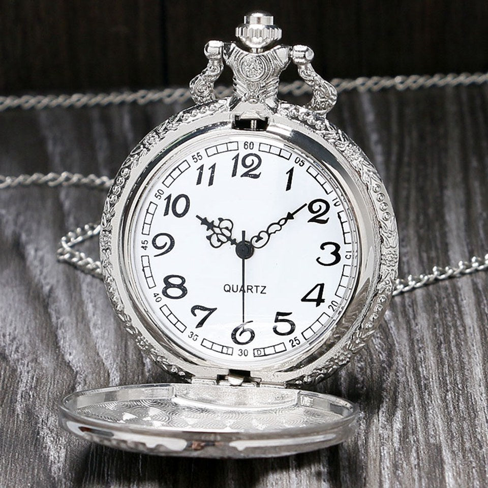 Pocket Watch Necklace Pendant Chain Unisex Gifts Clock cep saati