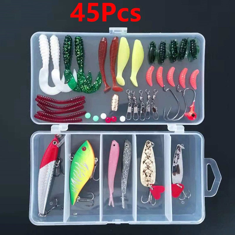 Set Spinner Crankbait Minnow Popper VIB Soft Hard Spoon Crank Baits Fishing Hooks Fishing Tools Tackle Box