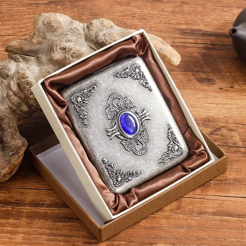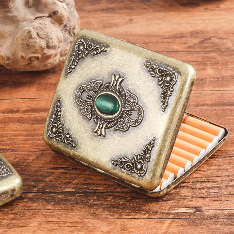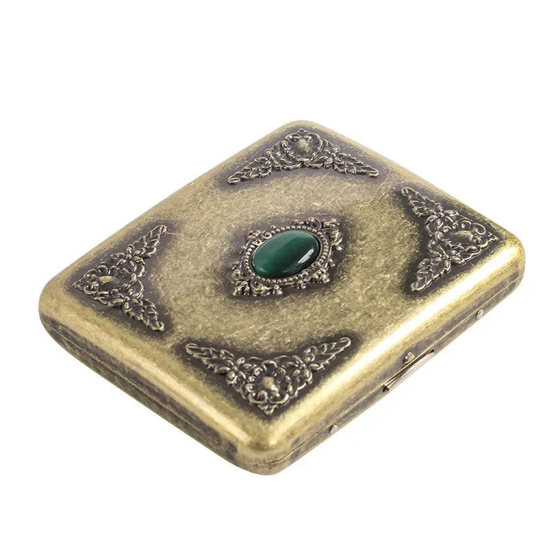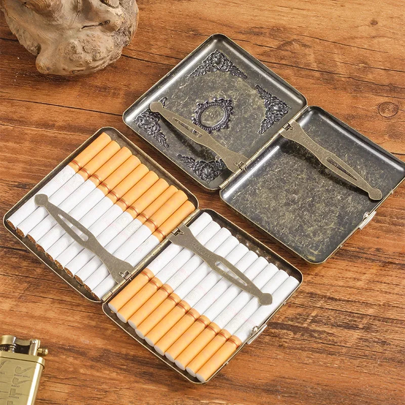 Vintage Metal Cigarette Case Box with Double Sided Spring Clip Open Retro Cigarete Case for Regular 20 Cigarettes Men Gifts