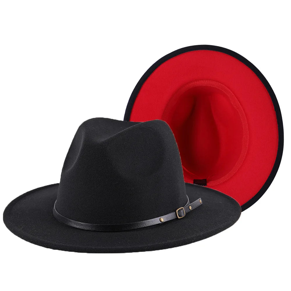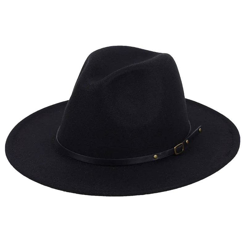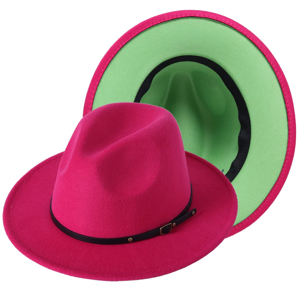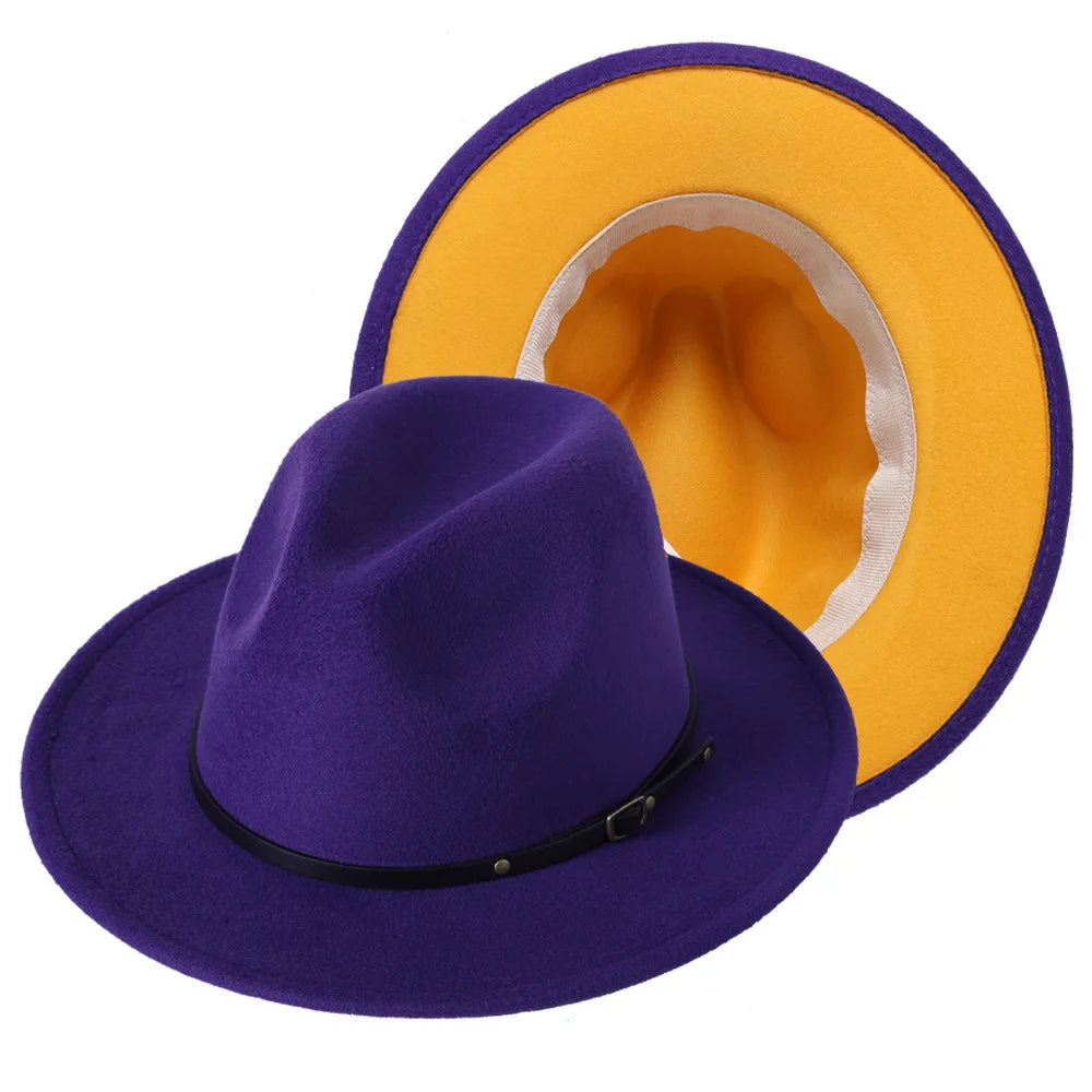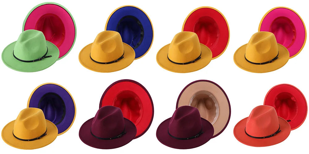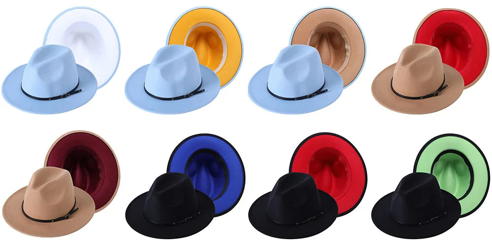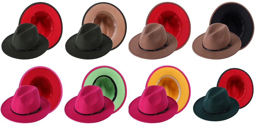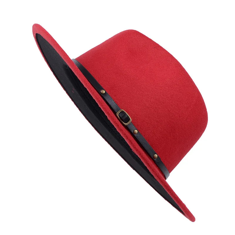 Patchwork Fedora Hat for Women Winter Hat with Belt Buckle Men's Hat Wide Brim Classic Party Church Jazz Top Cap Chapeau Femme