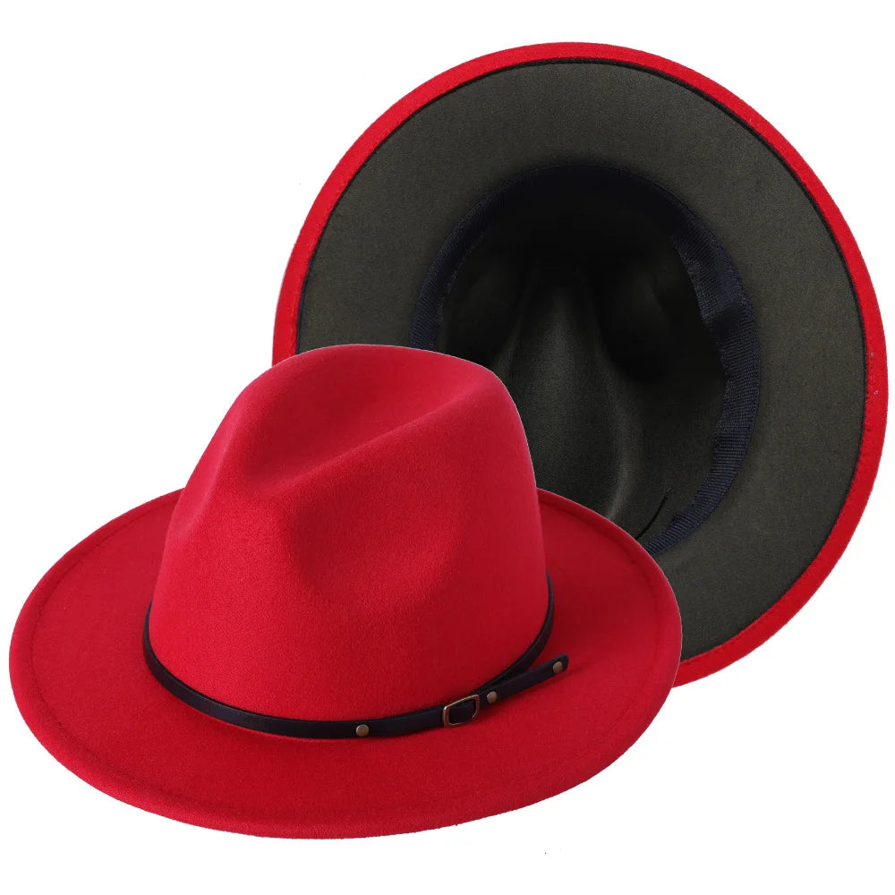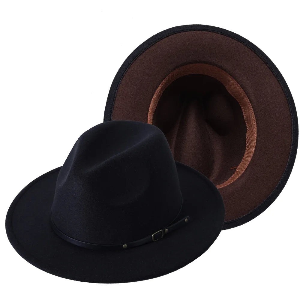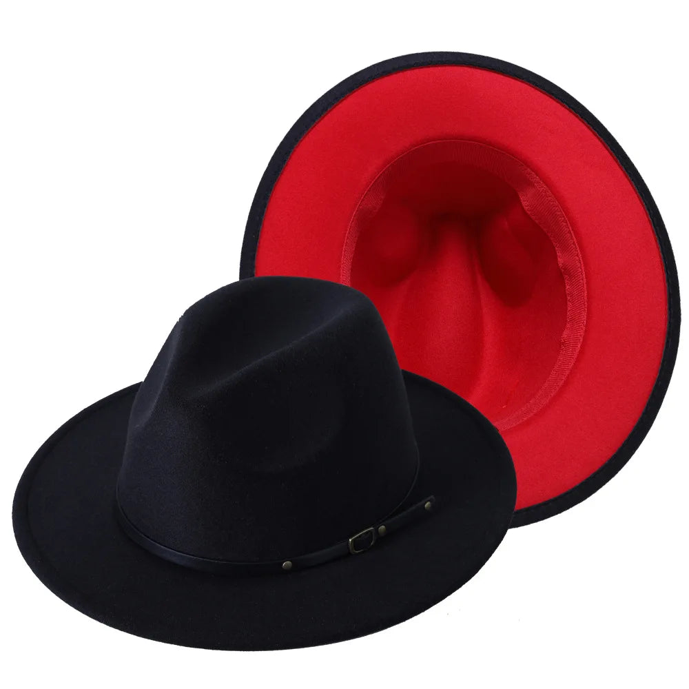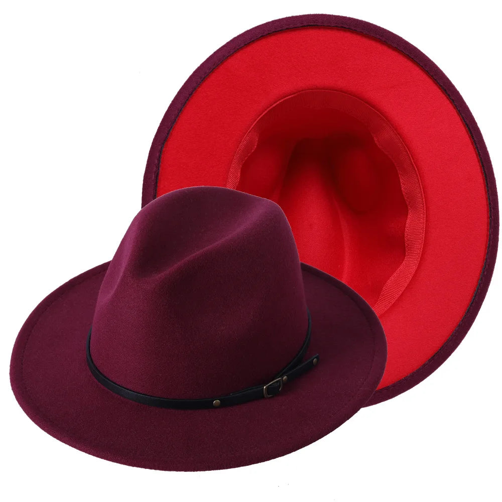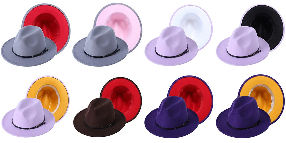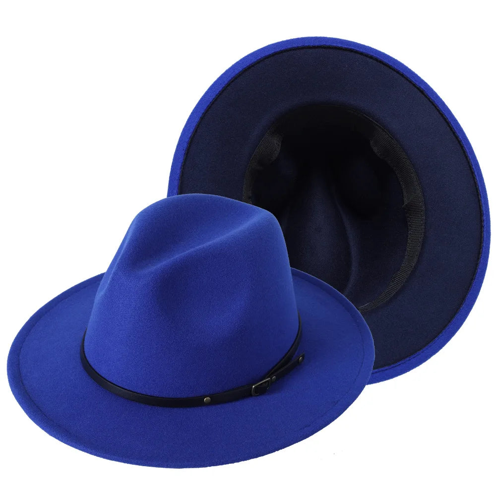 Patchwork Fedora Hat for Women Winter Hat with Belt Buckle Men's Hat Wide Brim Classic Party Church Jazz Top Cap Chapeau Femme