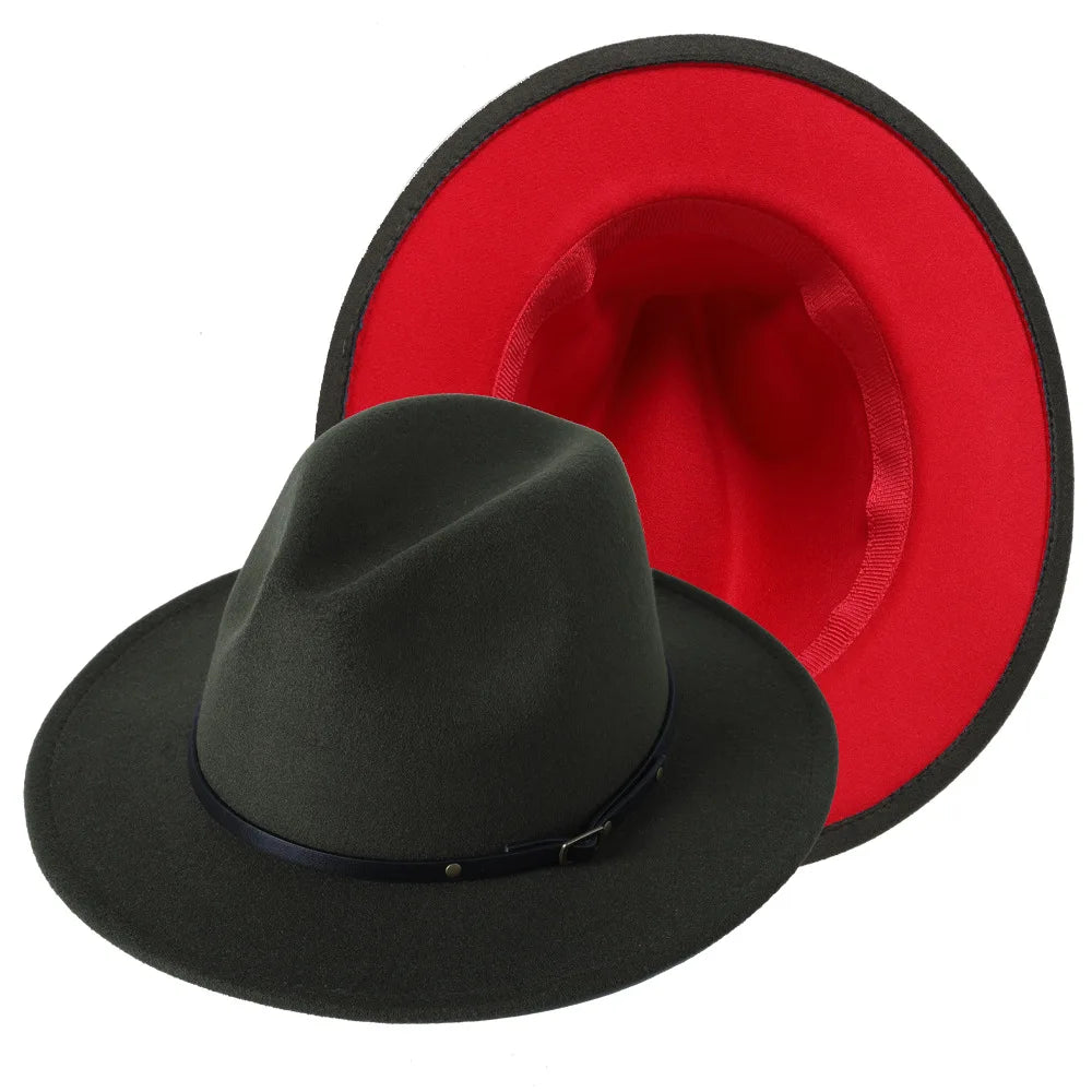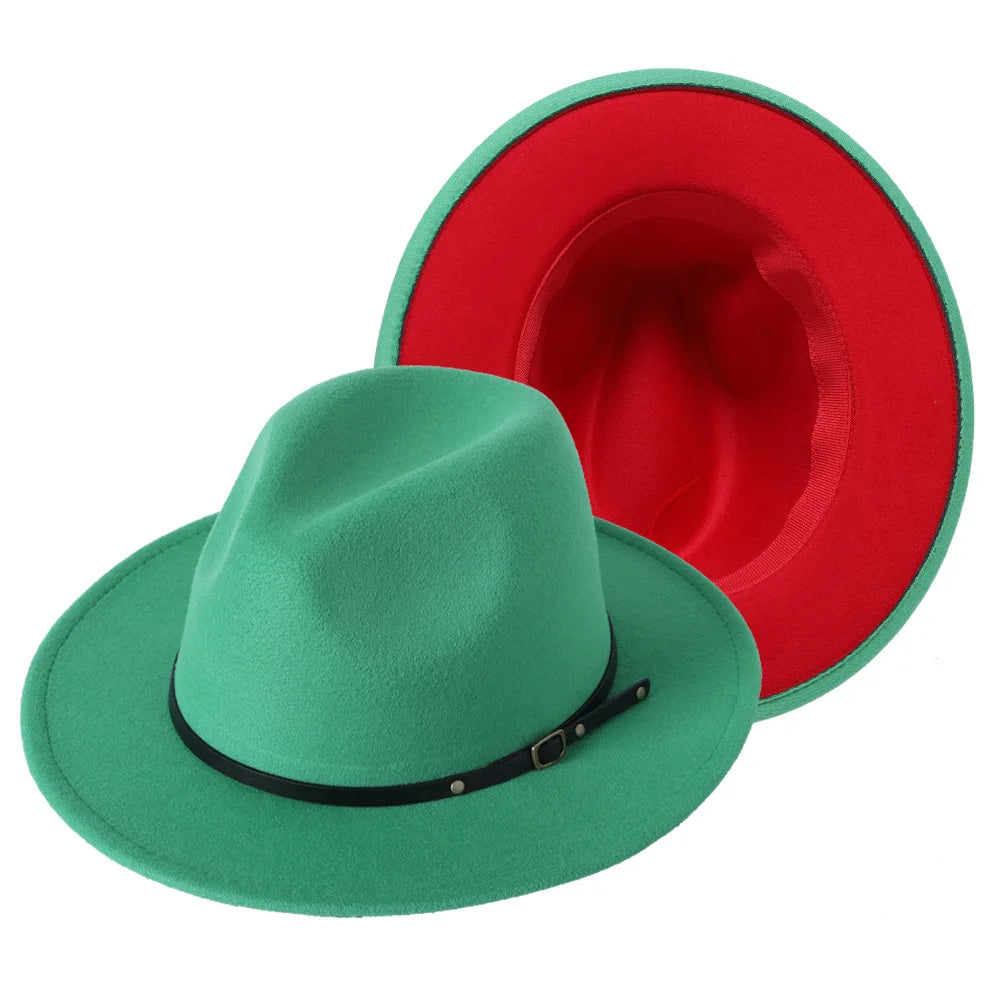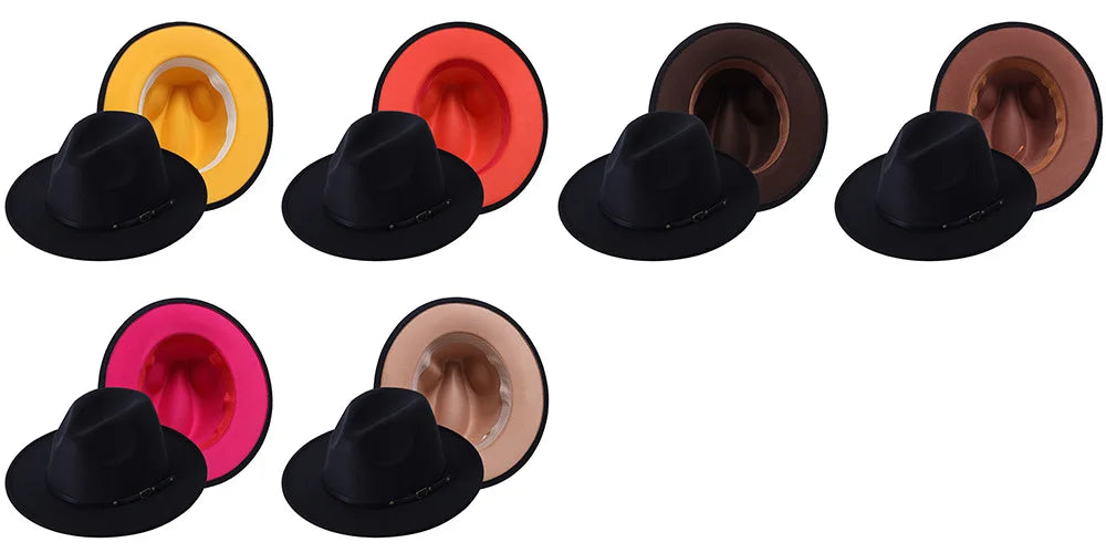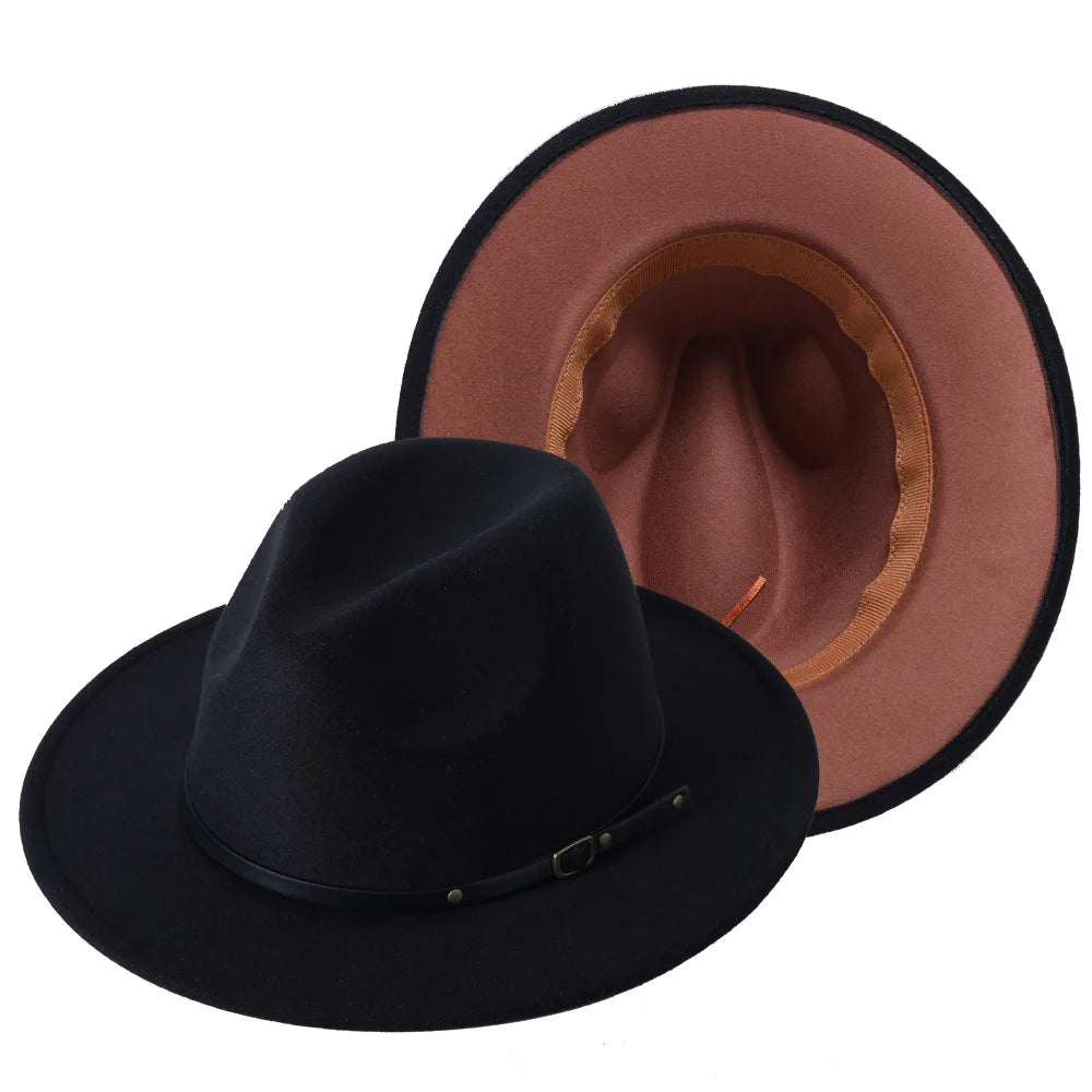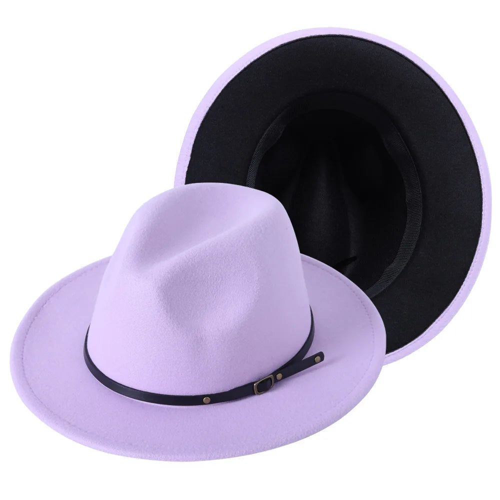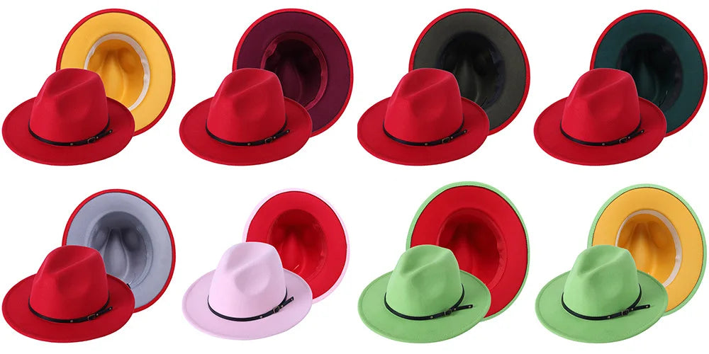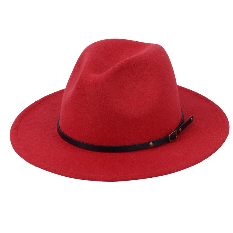 Patchwork Fedora Hat for Women Winter Hat with Belt Buckle Men's Hat Wide Brim Classic Party Church Jazz Top Cap Chapeau Femme