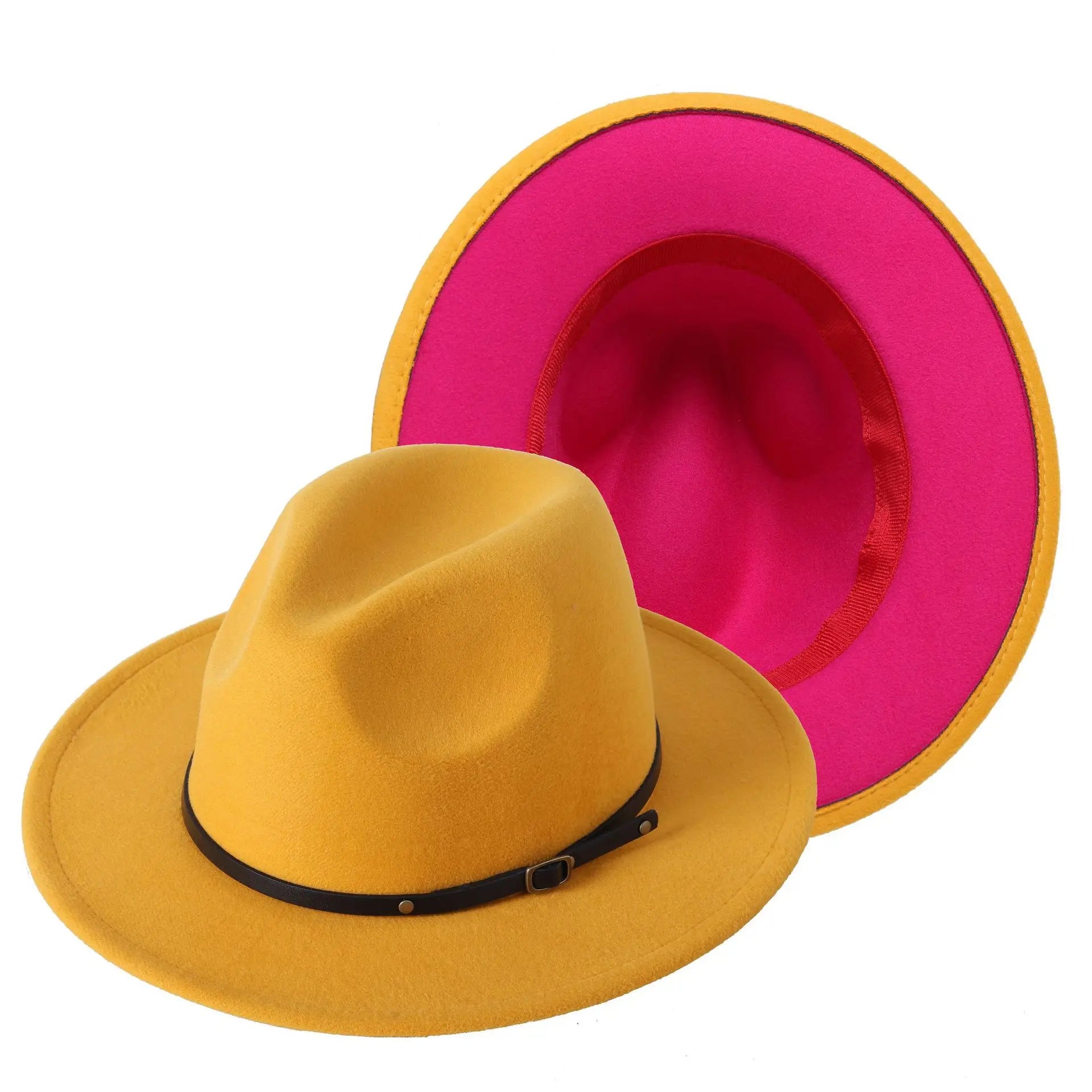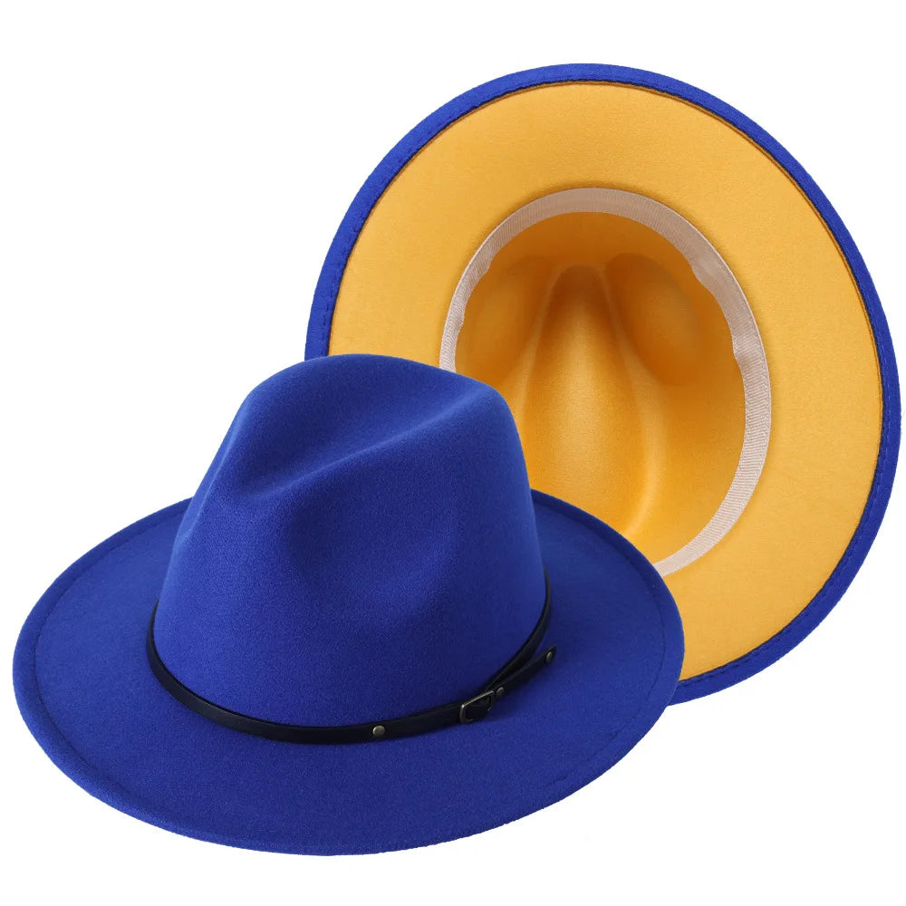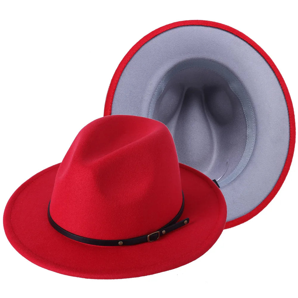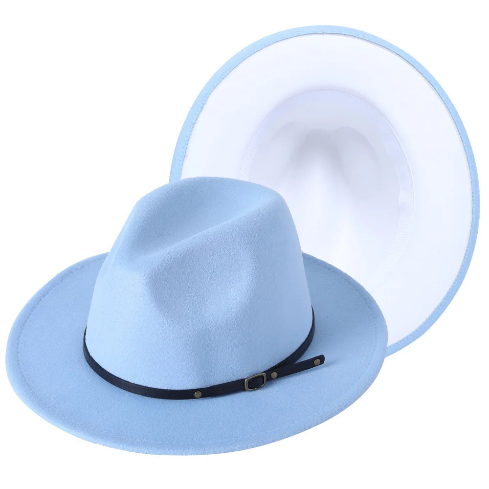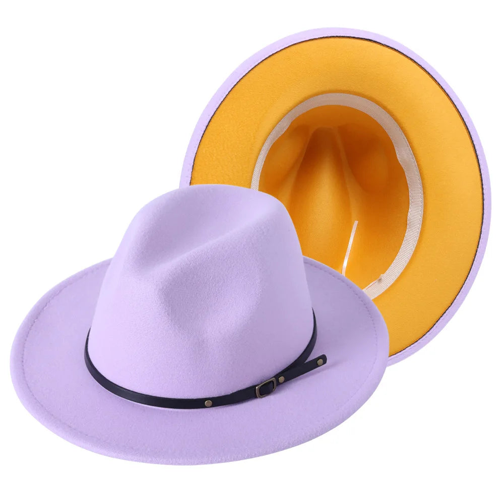 Patchwork Fedora Hat for Women Winter Hat with Belt Buckle Men's Hat Wide Brim Classic Party Church Jazz Top Cap Chapeau Femme