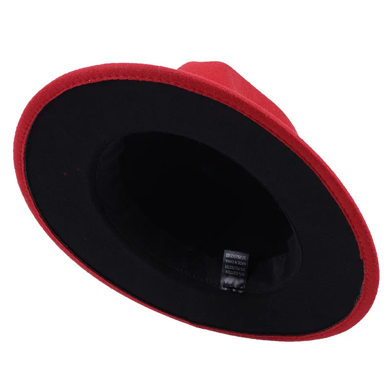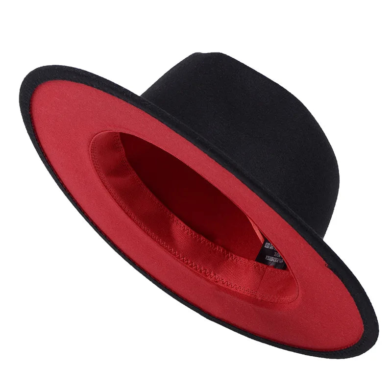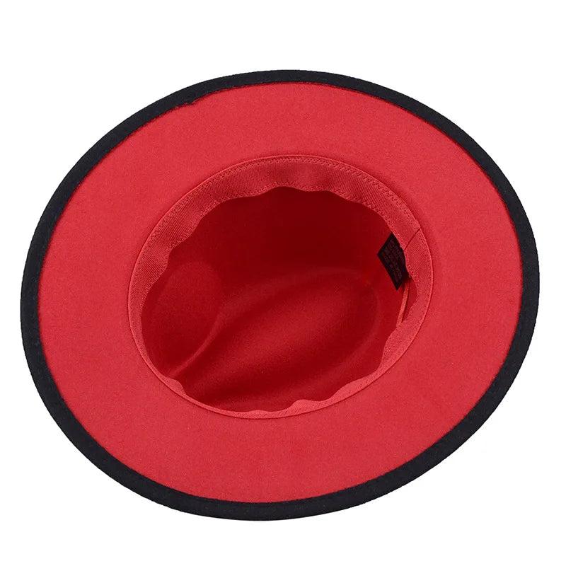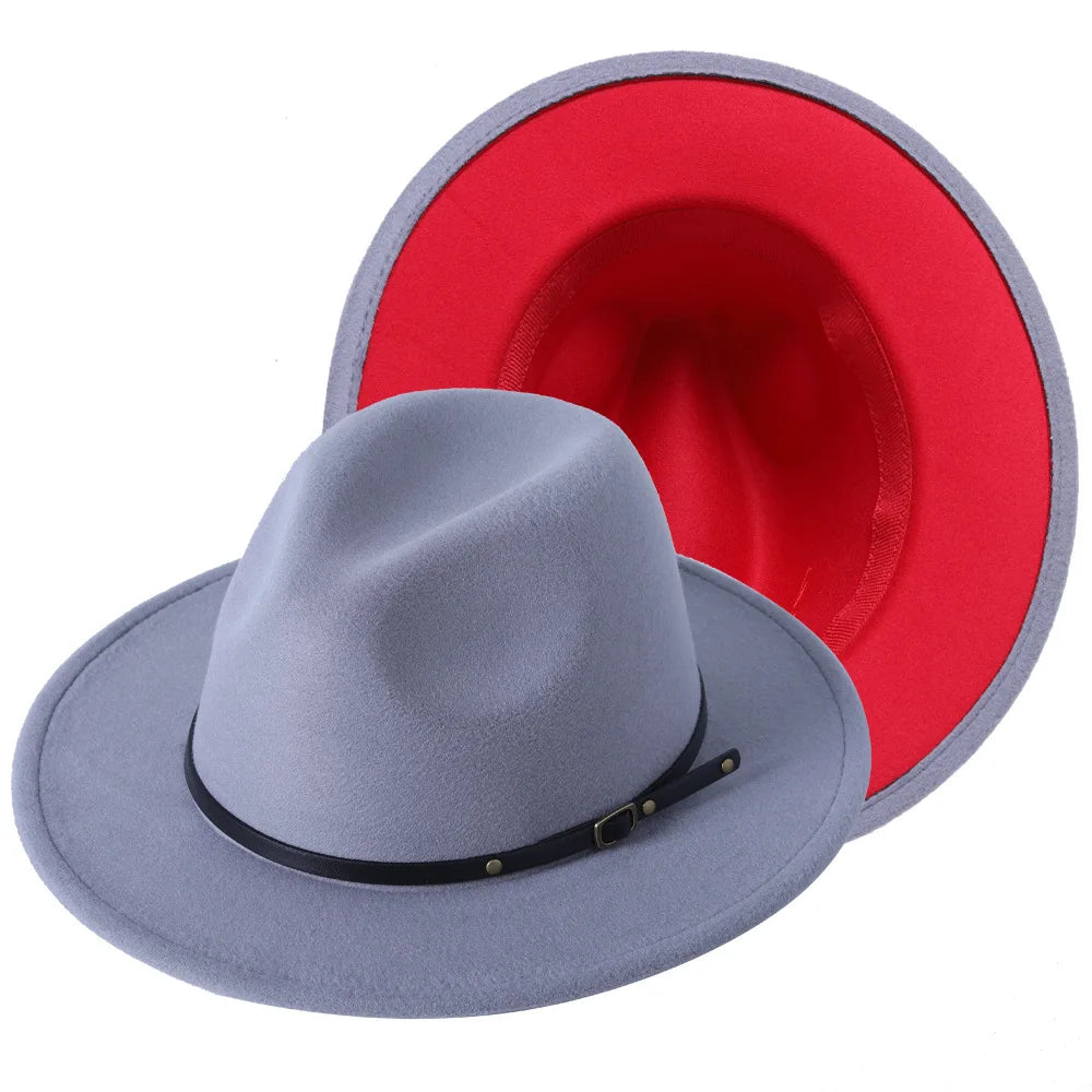 blue red bottom wide brim hat Panama felt hat for male jazz hat church top cap british women fedoras hats